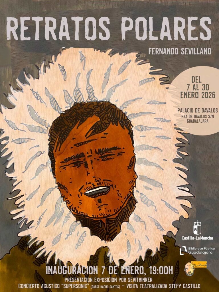 El próximo 7 de enero a las 19h de la tarde se inaugurará en el palacio de Dávalos de Guadalajara, en su biblioteca pública, la exposición Retratos Polares (aquí pueden verse las obras de la exposición la cual podrán visitarse hasta el 30 de enero), que supone un recorrido por los principales exploradores polares del siglo XX que han contribuido con sus gestas al conocimiento de los polos y a avances en la ciencia, entre otras cosas.